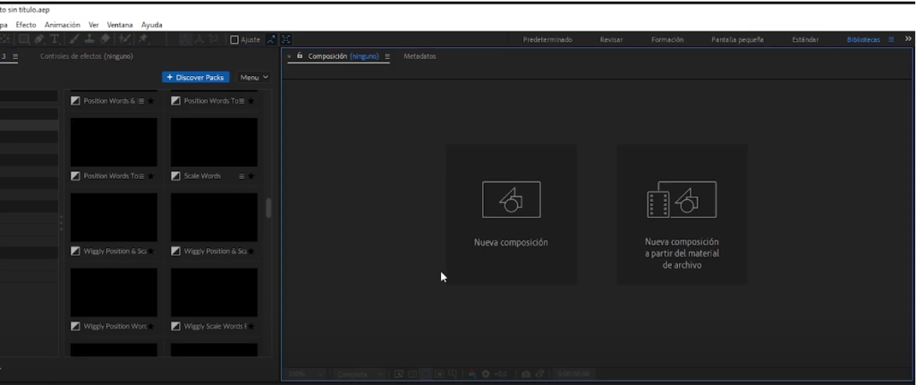 - Explora los efectos y ajustes preestablecidos de After Effects para mejorar la apariencia de tu animación de texto.