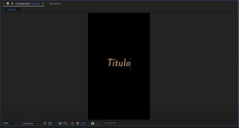 - Haz clic en la composición y escribe el texto que deseas animar.